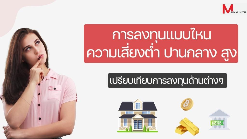 เพราะฉะนั้นถ้าท่านใดที่กำลังประสบปัญหาในการเลือกลงทุน คือไม่รู้ว่าจะลงทุนกับอะไรดี วันนี้เราก็จะจำแนกระดับความเสี่ยงของการลงทุนประเภทต่างๆ ให้ทุกท่านได้มองเห็นภาพได้ชัดเจนขึ้นและตัดสินใจได้รอบคอบยิ่งขึ้นว่าการลงทุนประเภทใดที่เหมาะกับเรามากที่สุด เพราะการลงทุนที่ดีคือการลงทุนที่เหมาะสมกับตัวเราเองไม่ใช่ไปเลือกตามคนอื่น